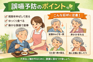 高齢者の方は、加齢に伴い飲み込む力が低下し、誤嚥(ごえん) のリスクが高まりやすくなります。